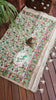 The saree features multicolor floral leafy jaal and bird motifs all over that adds elegance to the saree. The border is richly decorated with colorful Parsi Gara embroidery where the flowers are blooming in multicolors with leaves and birds. The edges of the saree are finished with cord piping and the pallu edges are beautified with adorable tassels. The Parsi style embroidery is the stunning beauty of the saree.