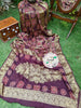 The saree features impressive and detailed ajrakh motif block prints inside each gharchola zari weave all over the body of the saree. The pallu has rich and huge zari weave motifs, and the border is decorated with zari weave motifs. The masterpiece zari work brings must-have possession.