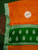 This is a traditional pure banarasi woven khaddi georgette saree in a beautiful green and contrasting blue color border with an amazing zari weave.