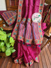 This is an exclusive pure organza silk saree with bandhani prints and Kantha hand embroidery.