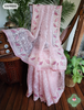 This Lilac Pure Georgette Saree features exquisite Chikankari Embroidery on its body, enhanced with beautiful Paisley Motifs on the border. The all over jaal embroidery adds a touch of elegance, while sequins highlight adds a subtle sparkle. Comes with a custom stitched/ready-made blouse, fall, and petticoat. Perfect for any occasion.