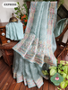 Zynah Beige & Grey Jute Linen Saree With Kantha Work; Custom Stitched/Ready-made Blouse, Fall, Petticoat; SKU: 2207202301