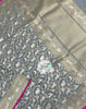 Zynah's latest introduction and original design on Pure Tussar silk is an amalgamation of Royal Rajasthani pitan artwork and Lucknowi Mukaish work adding elegance to this drape