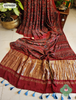 Zynah Pure Modal Silk Ajrakh Saree with Tissue Pallu, Handblock Prints; Custom Stitched/Ready-made Blouse, Fall, Petticoat; Shipping available USA, Worldwide