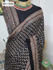 Zynah Made To Order Black & Brown Ajrakh Modal Silk Saree With Hand Embellishments; Custom Stitched/Ready-made Blouse, Fall, Petticoat; SKU:1909202502