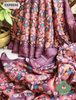 This is a beautiful organic pure linen(120c) handwoven saree with digital kalamkari print.The saree features attractive floral leafy vines all over the body. The simple floral vines and solid zari weave upon that flow throughout the borders. The pallu and bottom border have huge enchanting peacock motifs with vines and leaves in vibrant colors. The pallu edges are finished with adorable multi-color tassels. This comes with a contrasting color solid plain blouse piece with a zari border.