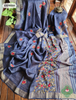 Zynah Mustard Yellow Linen Silk Saree With Frenchknot Hand Embroidery; Custom Stitched/Ready-made Blouse, Fall, Petticoat; SKU: 1206202404