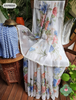 The pallu and pleats boast big floral prints that resemble watercolors, adding a whimsical touch to the overall design. The meticulous embroidery in Lehariya style, reminiscent of traditional Lucknowi Chikan work, complements the bold florals beautifully. Sequins and hand kantha work add a touch of regalia, making this saree truly one-of-a-kind.