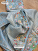 Immerse yourself in the beauty of our Organza Silk Sarees, adorned with shimmering gold stripes, delicate floral embroidery, and exquisite crochet lace. The luxurious organza silk offers a graceful drape, while the gold stripes add a touch of regal charm. The intricate floral embroidery showcases masterful craftsmanship, making each saree a true work of art. Handcrafted crochet lace enhances the sophistication of this elegant attire. Perfect for any occasion, our sarees blend tradition with modern elegance, ensuring you make a memorable impression. Elevate your style with the unparalleled beauty and luxury of our Organza Silk Sarees.