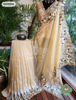 Soft and romantic, this pink organza tissue saree is a celebration of delicate artistry. Hand-embroidered cranes glide across the fabric, complemented by an elegant cutwork scalloped border. Its airy texture ensures effortless draping and comfort, while the charming details bring a festive sparkle to your ensemble. Ideal for weddings, parties, or festive occasions, it pairs beautifully with subtle or statement accessories. This saree is for those who seek graceful sophistication with a hint of whimsy, making every moment memorable with its light, enchanting allure.