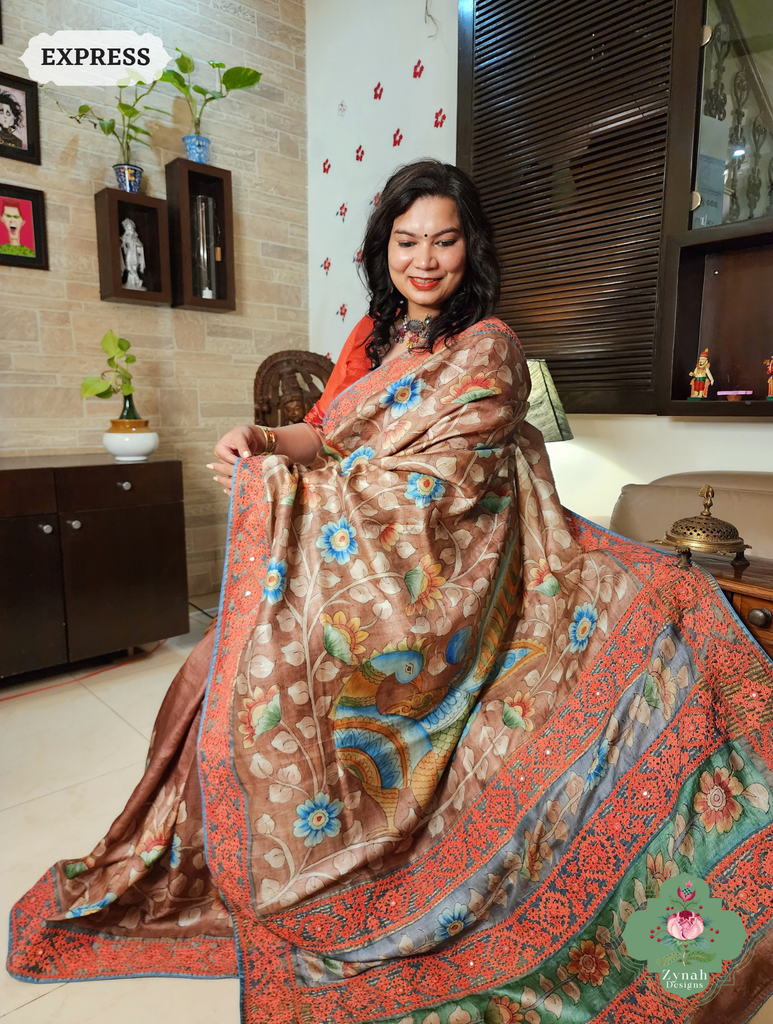 Type: Hand Painted Pure Tussar Silk Kalamkari Saree