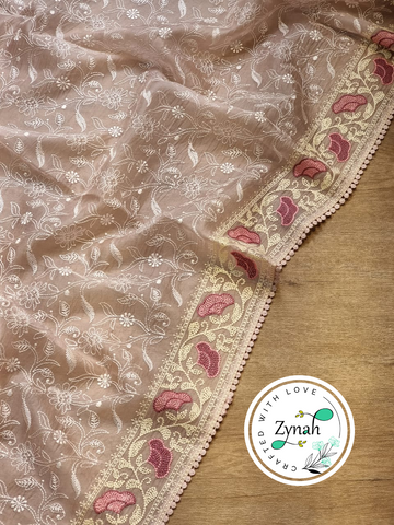 Type: Pure Organza Silk Chikankari Embroidered Saree.