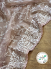 This wonderful saree is an inspiration of parsi gara with beautiful crochet lace at the edges of the saree. The pastel colors with exquisitive embroidery adds elegance to the saree. The body of the saree is richly decorated with wonderful embroidery which consists of leaves, impressive vines, persian mythology inspired birds and big blooming flowers. The birds and motifs add stunning beauty which is carried throughout the pallu. The crochet lace at the borders of the saree and pallu adds to its stylish look.
